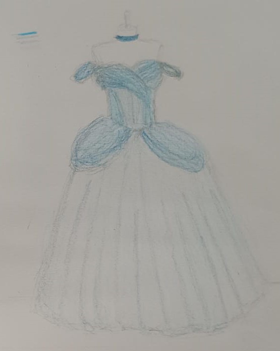 Een prachtige jurk, die precies lijkt op de jurk van de Disney prinses Assepoester.