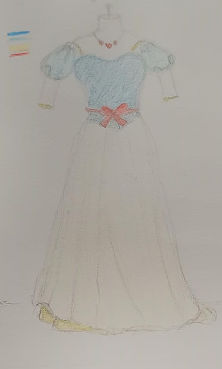 Een prachtige jurk, die precies lijkt op de jurk van de Disney prinses Sneeuwwitje.